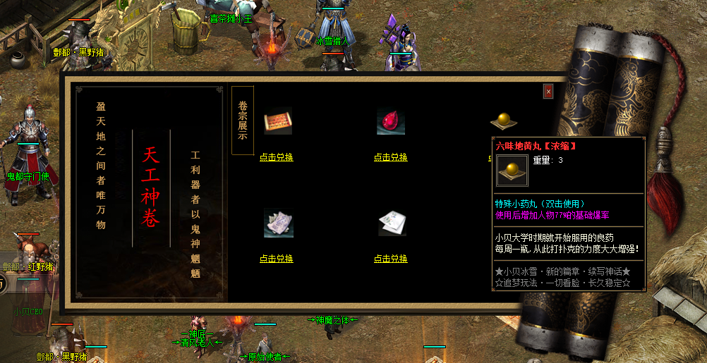 5.本版本装备鉴定品阶分为:古器,灵器,鬼器,法器,玄器,魔器,仙器,神器,圣器